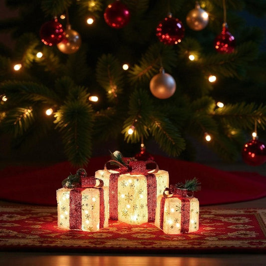 Add a festive sparkle to your home with Glow Fest Boxes, a charming set of 3 illuminated gift boxes. Their warm glow and golden snowflake details create a cozy, magical atmosphere perfect for holiday gatherings, parties, or simply brightening any room. Let these glowing boxes bring joy, warmth, and a touch of Christmas magic to your space.